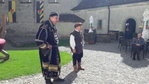 Der Heimattag dankt dem Burgvogt Max Haller für die Einladung auf die Waldburg und seinem Burg-Kastellan Roland Ohneseit für die Führung durch das Museum. In seiner besonderen Art die Besucher ins finstere Mittelalter eintauchen zu lassen gelingt es an Beispielen der damaligen Zeit die Zuhörer zu fesseln. Fasziniert folgten die Heimatinteressierten dem Kastellan durch alle Räume der Burg bis hinauf auf die wiederbegehbare Plattform um den herrlichen Blick über das Alläu bis zum Bodensee und weit ins Hinterland schweifen zu lassen.